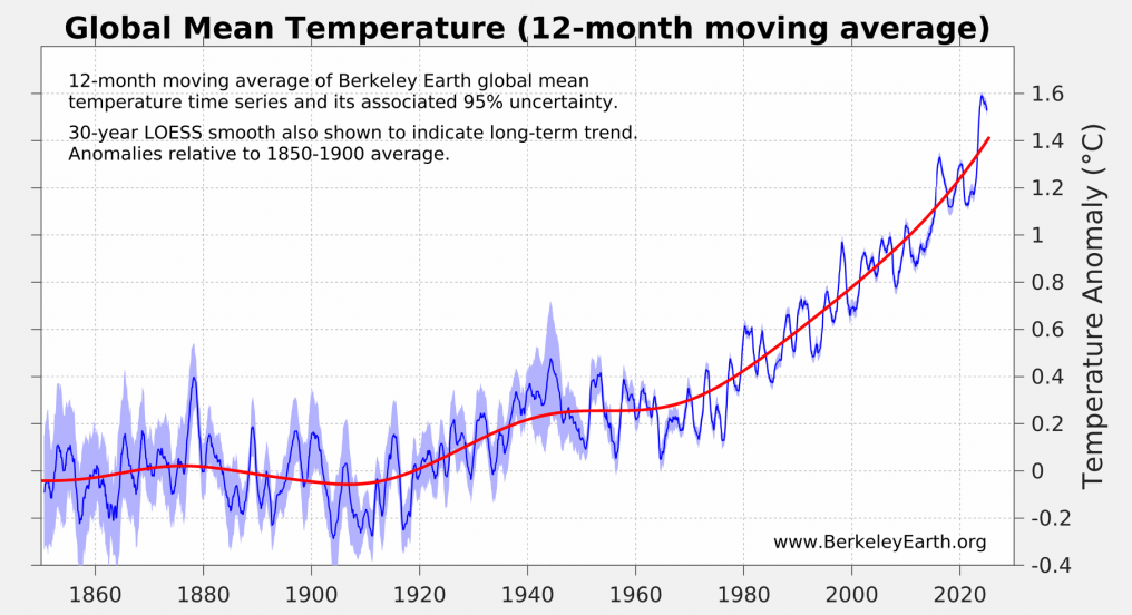As a year, 2025 is also settling into 3rd place, behind 2024 and 2023. It is unlikely it will overtake 2024 or 2023 as the hottest and second hottest years on record, but it is trending ahead of all other years.